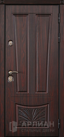 Коричневая входная дверь в цвете темный орех с двух сторон для сталинки №7
