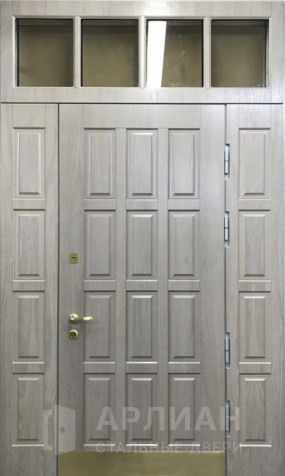 Металлическая входная дверь в коттедж с верхней фрамугой №10