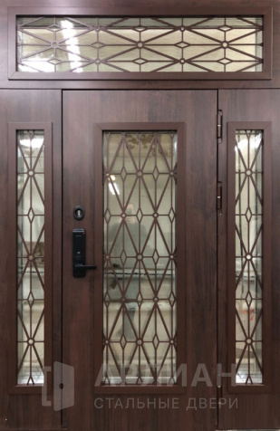 Парадная металлическая дверь с остеклением фрамугой №15