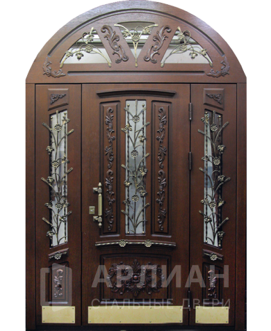 Входная арочная дверь со стеклянными вставками №49
